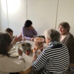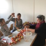 Dieses Mal stand der Nachmittag ganz im Zeichen der herbstlichen Jahreszeit. Nicht nur die Tische waren herbstlich dekoriert , sondern es gab auch ein reichhaltiges Angebot verschiedener Apfelkuchen, die die Besucher mitgebracht hatten. Außerdem warteten körbeweise wunderschöne Äpfel darauf geschält und zu Apfelmus verarbeitet zu werden. Große und kleine Besucher hatten beim Schälen riesigen Spaß. Unermüdlich wurde in der Küche dann Apfelmus gekocht.